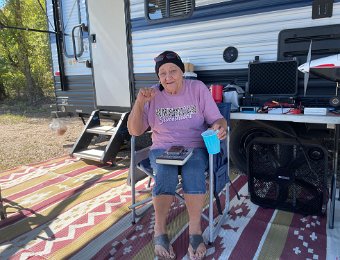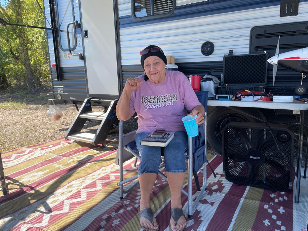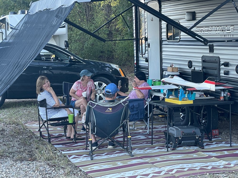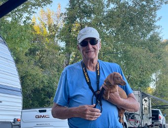 Jim amd Terry Boston chat with Jim's Deception in the foreground