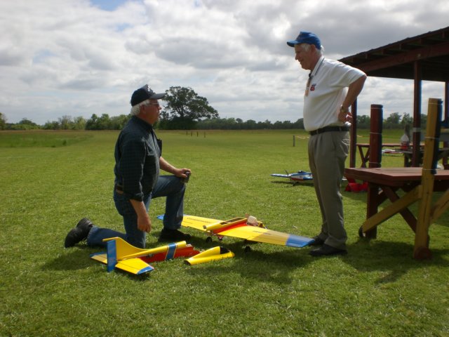 Charlie Johns and Keith Watson retrieving the pieces of Charlie's injured Compensator
